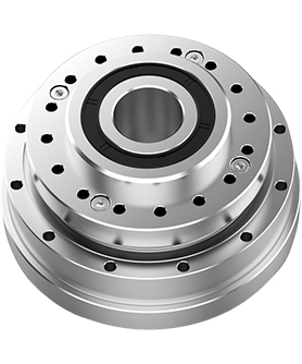 It features a hollow top-hat design with a large center hole. It uses a special oval-shaped wave generator and built-in roller bearings for smooth operation. The fully sealed unit is easy to install and perfect for applications needing cables to pass through its center.